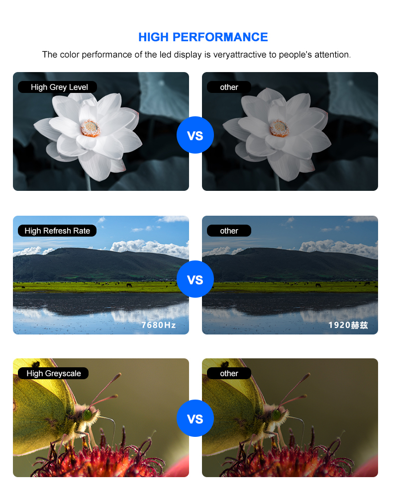 | Pixel pitch | P1.2/P1.5/P1.8/P2/P2.5 |